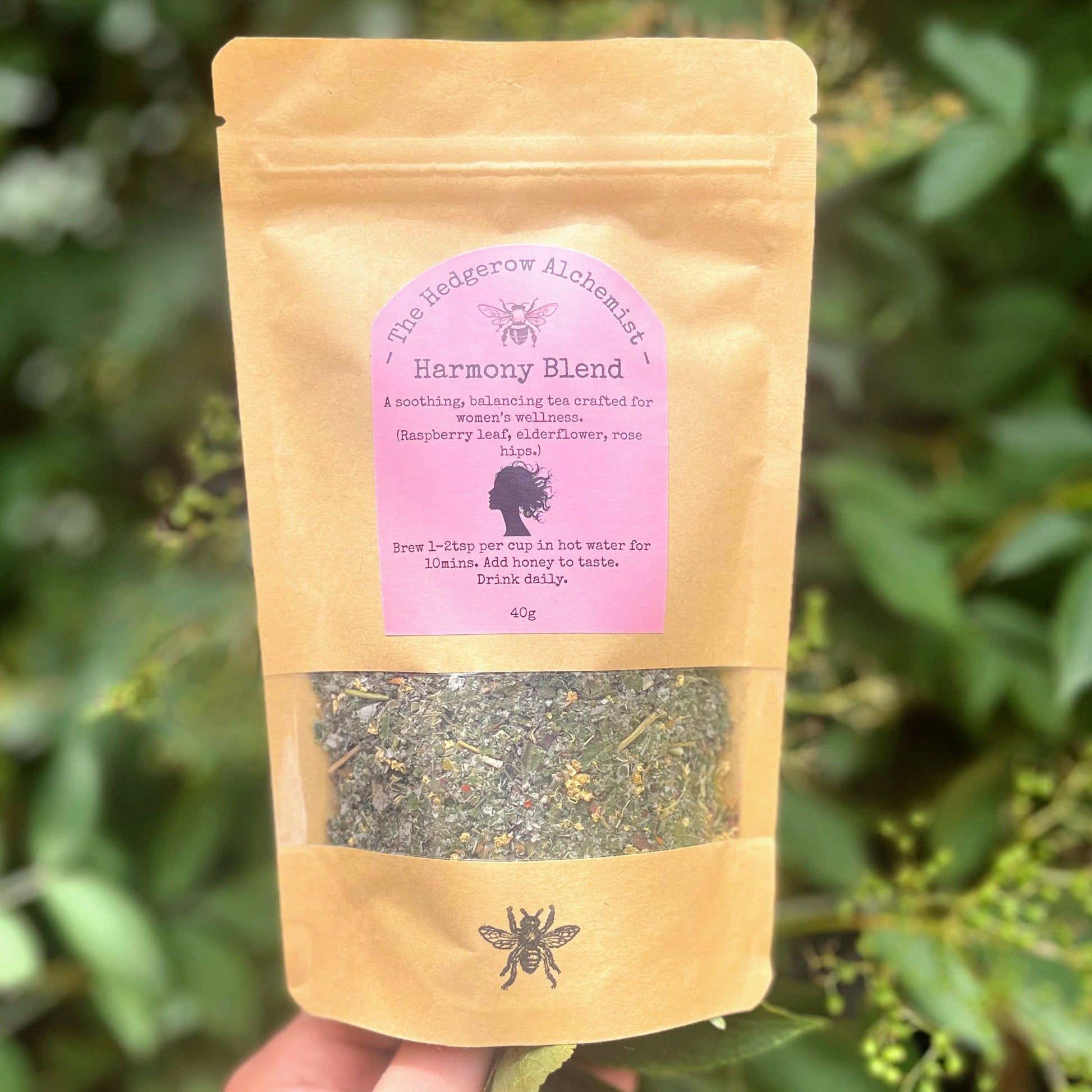 Harmony Blend is a gentle, grounding tea crafted to support women’s health and bring inner balance. With raspberry leaf to tone the womb and pelvic floor, elderflower to support natural cleansing, and rosehip for a gentle boost of vitamin C, this blend offers steady nourishment for the body and a moment of calm for the mind.